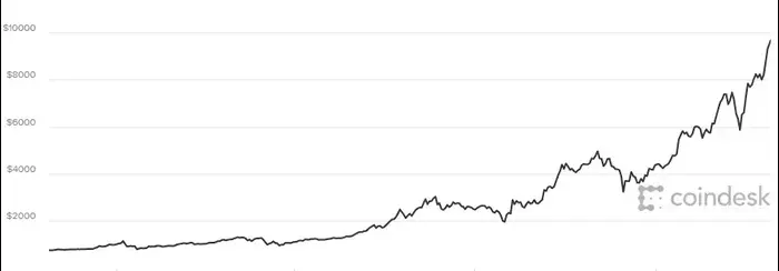 הזינוק של החודש האחרון הצליח לתפוס רבים בהפתעה. בתאריך 1 באוקטובר היה שווה מטבע ביטקוין אחד 4,394 דולרים, בתאריך 1 בנובמבר הוא כבר האמיר ל-6,750 דולרים ליחידה, בתאריך 23 בנובמבר הוא היה שווה 8,002 דולרים וכעת, כאמור, הוא הצליח להגיע לרף של 10,000 דולרים לביטקוין אחד. בשלב הזה אין לדעת היכן הוא יעצור ויש מומחים אחרים הטוענים שעוד לא הגענו לשיא.